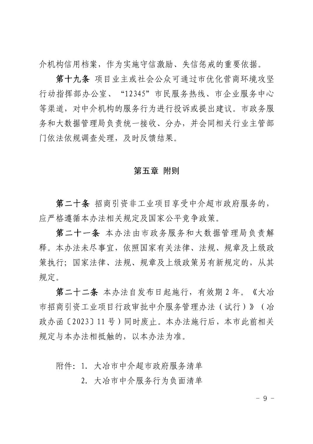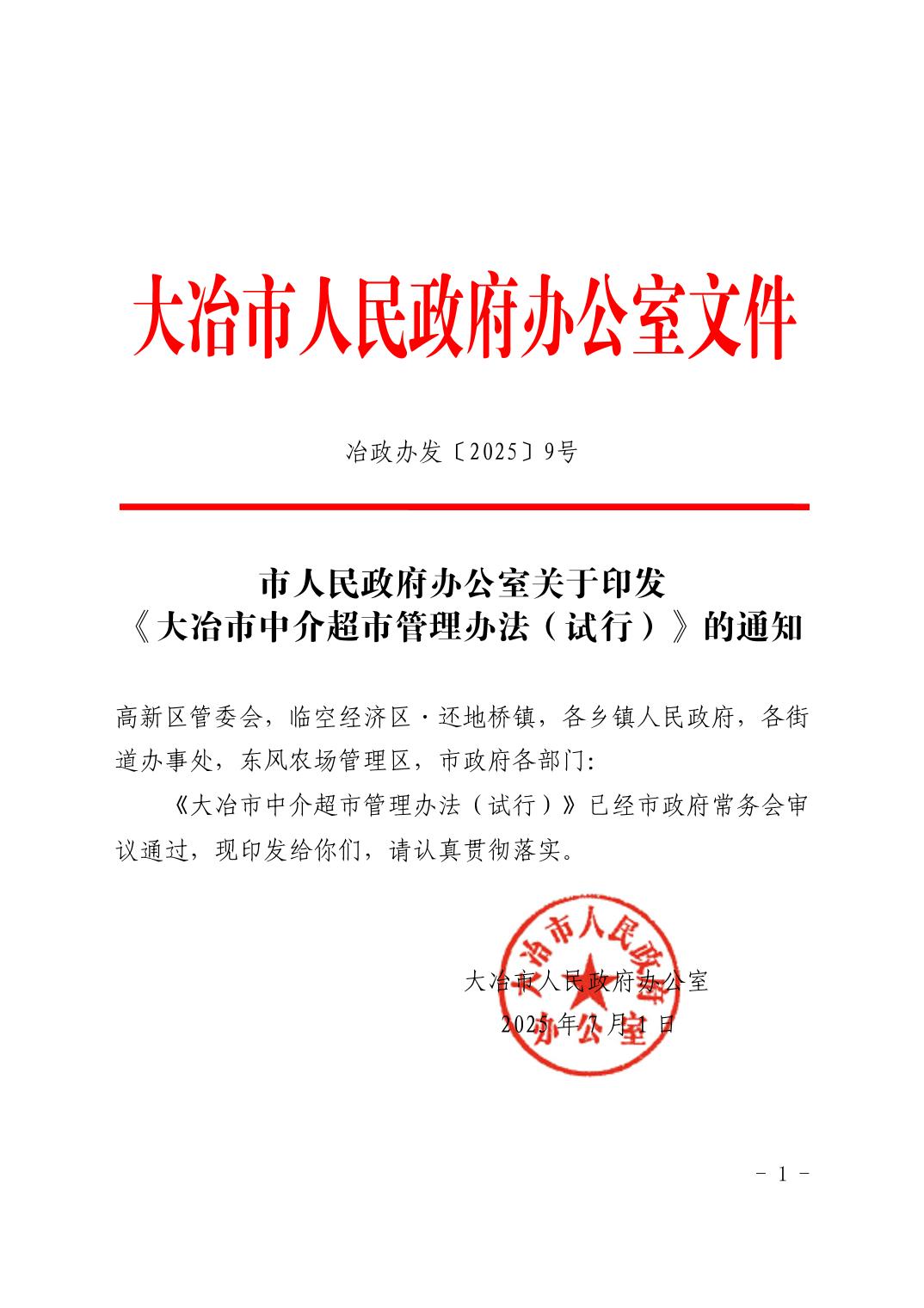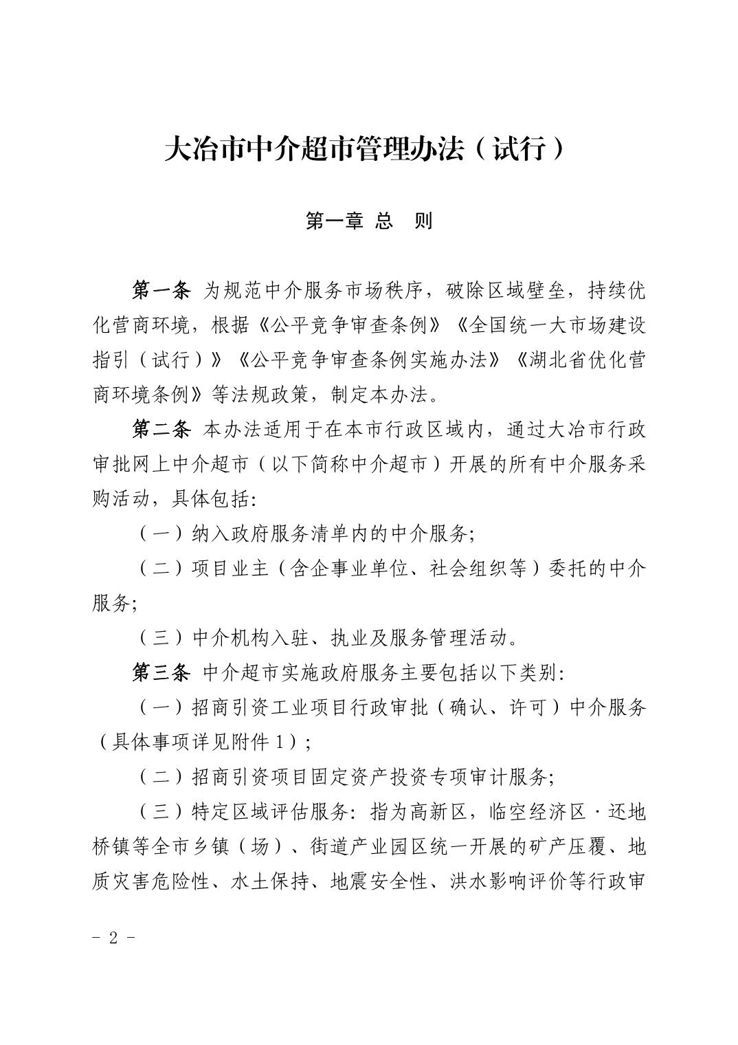 關于印發《大冶市中介超市管理辦法(試行)》的通知