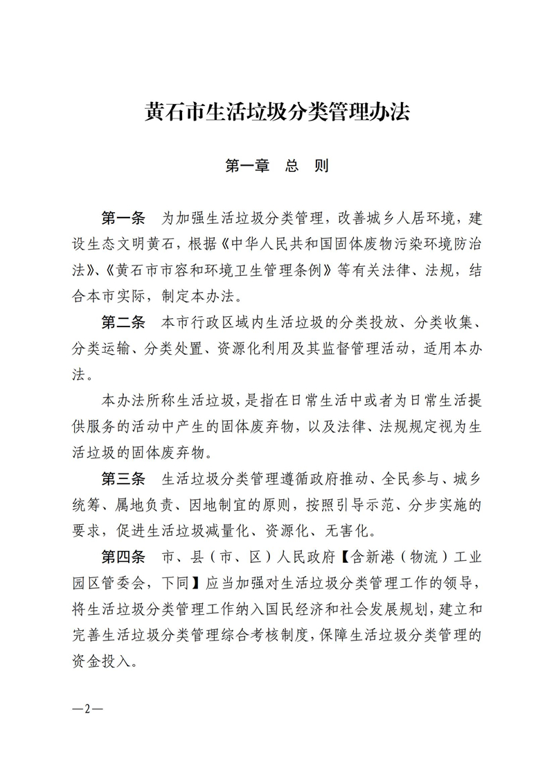 《黃石市生活垃圾分類管理辦法》