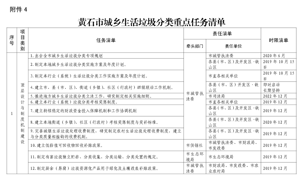 4.黃石市城鄉生活垃圾分類重點任務清單