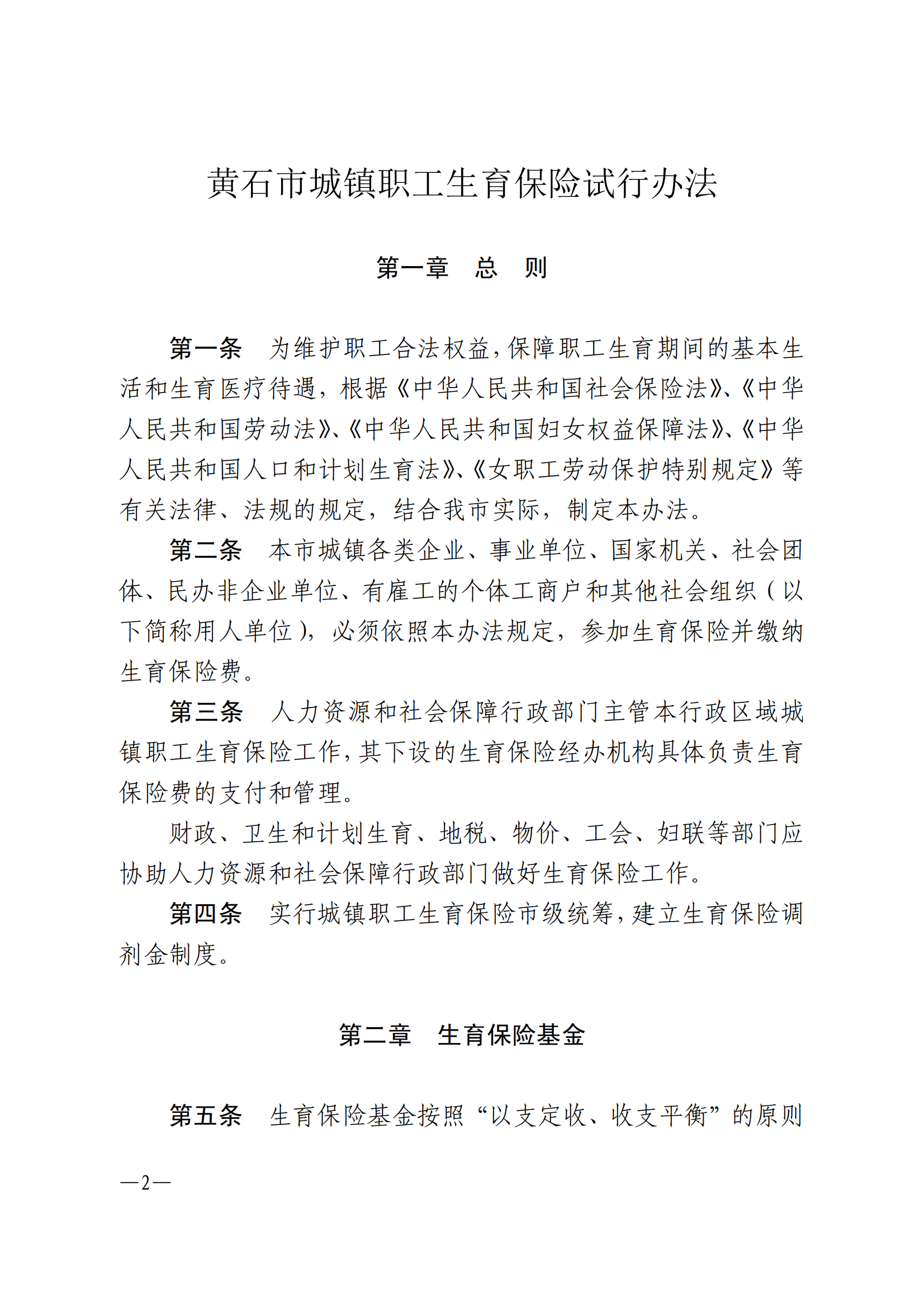 黃石市城鎮職工生育保險試行辦法