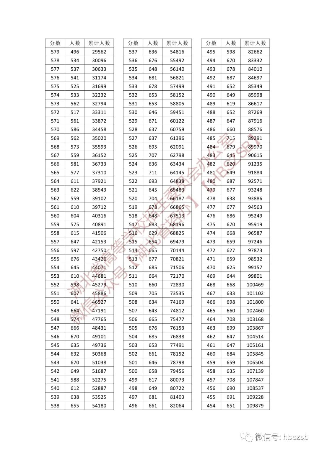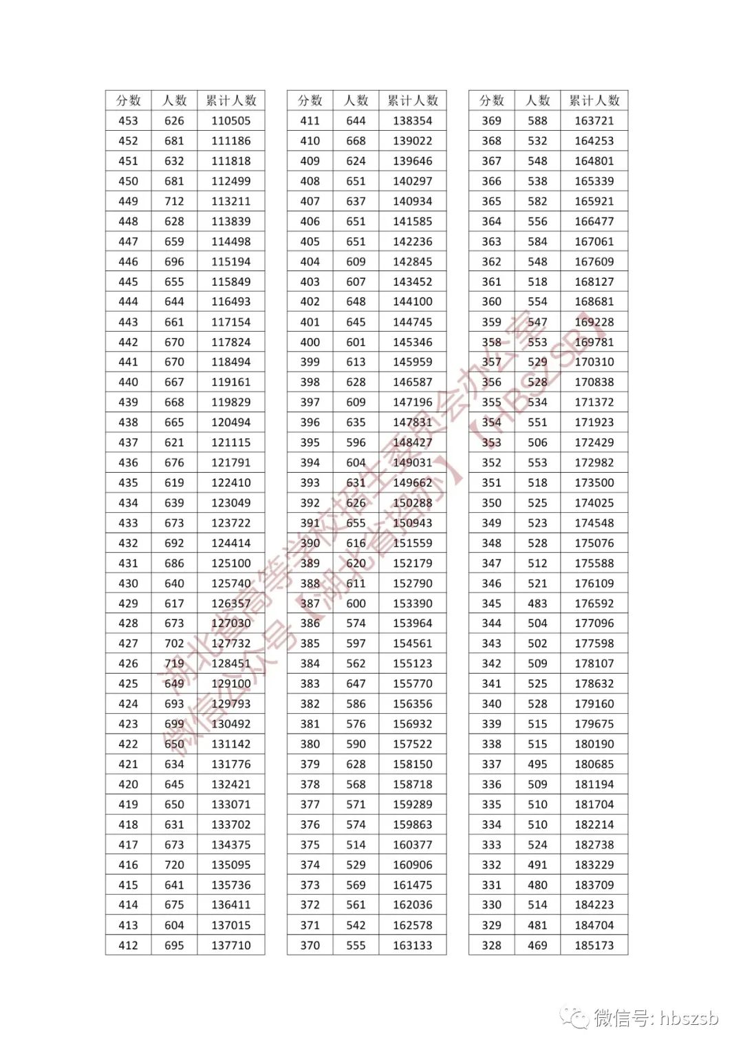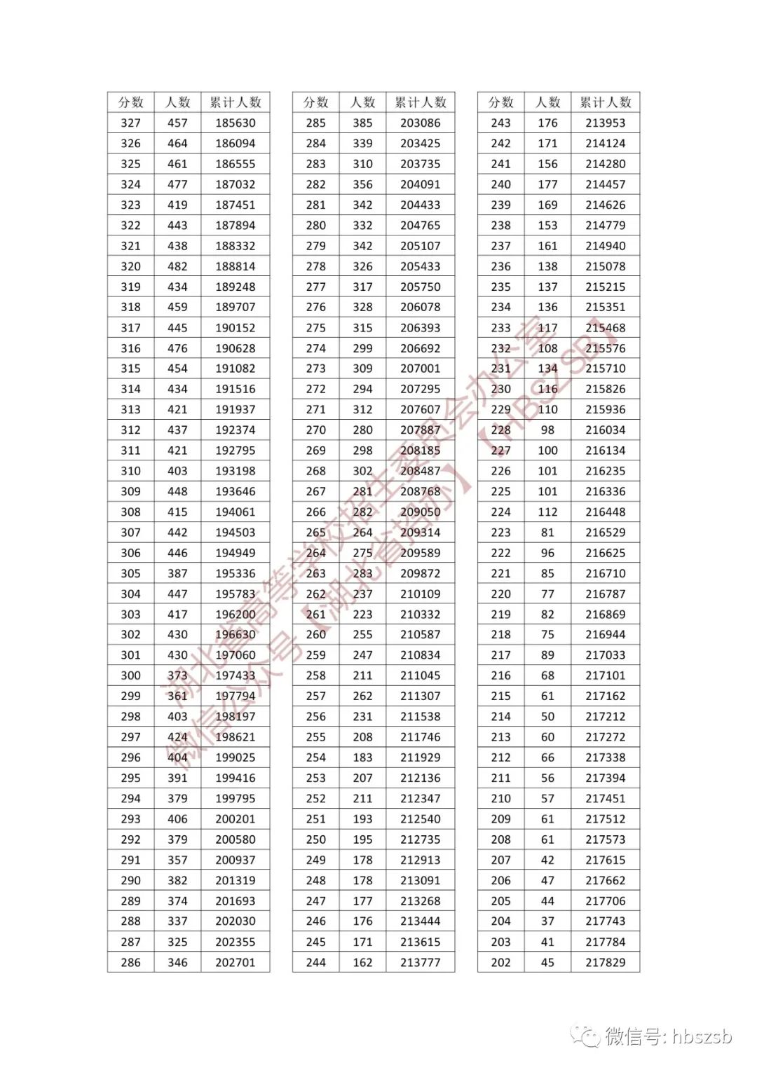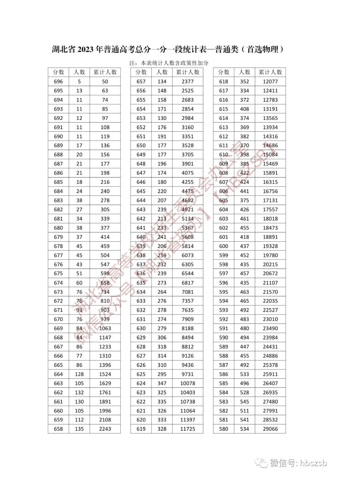 湖北省2023年普通高考總分一分一段統計表 【普通類-首選物理】