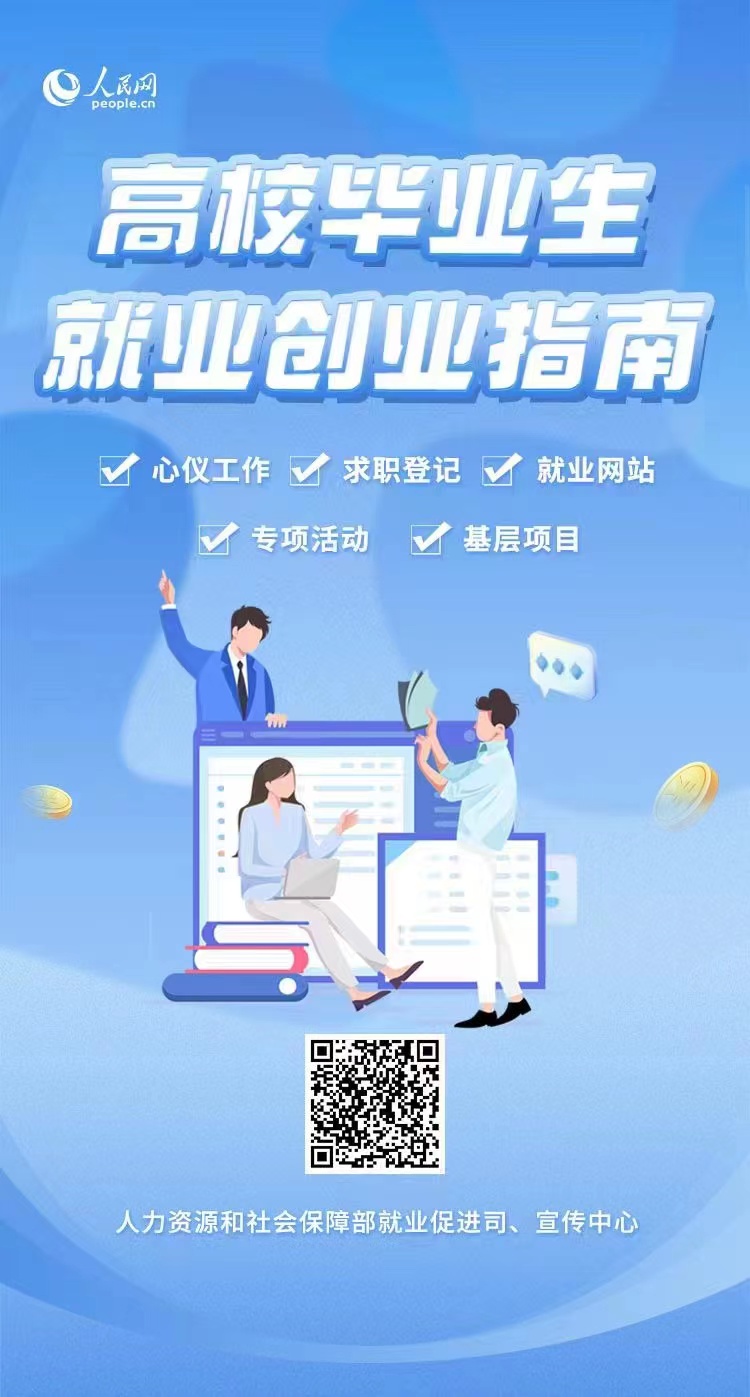人力資源社會保障部聯合人民網推出高校畢業生就業系列政策指南,助力高校畢業生就業,為畢業生提供不斷線的就業服務。
