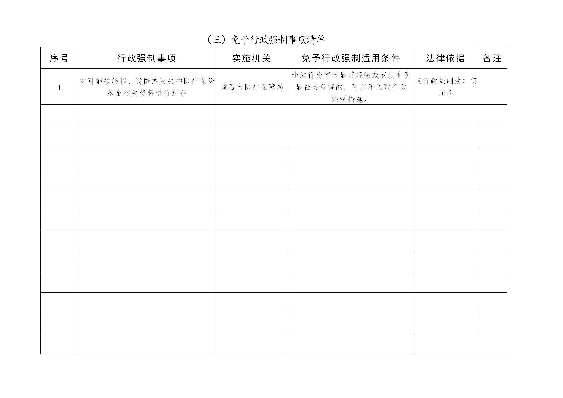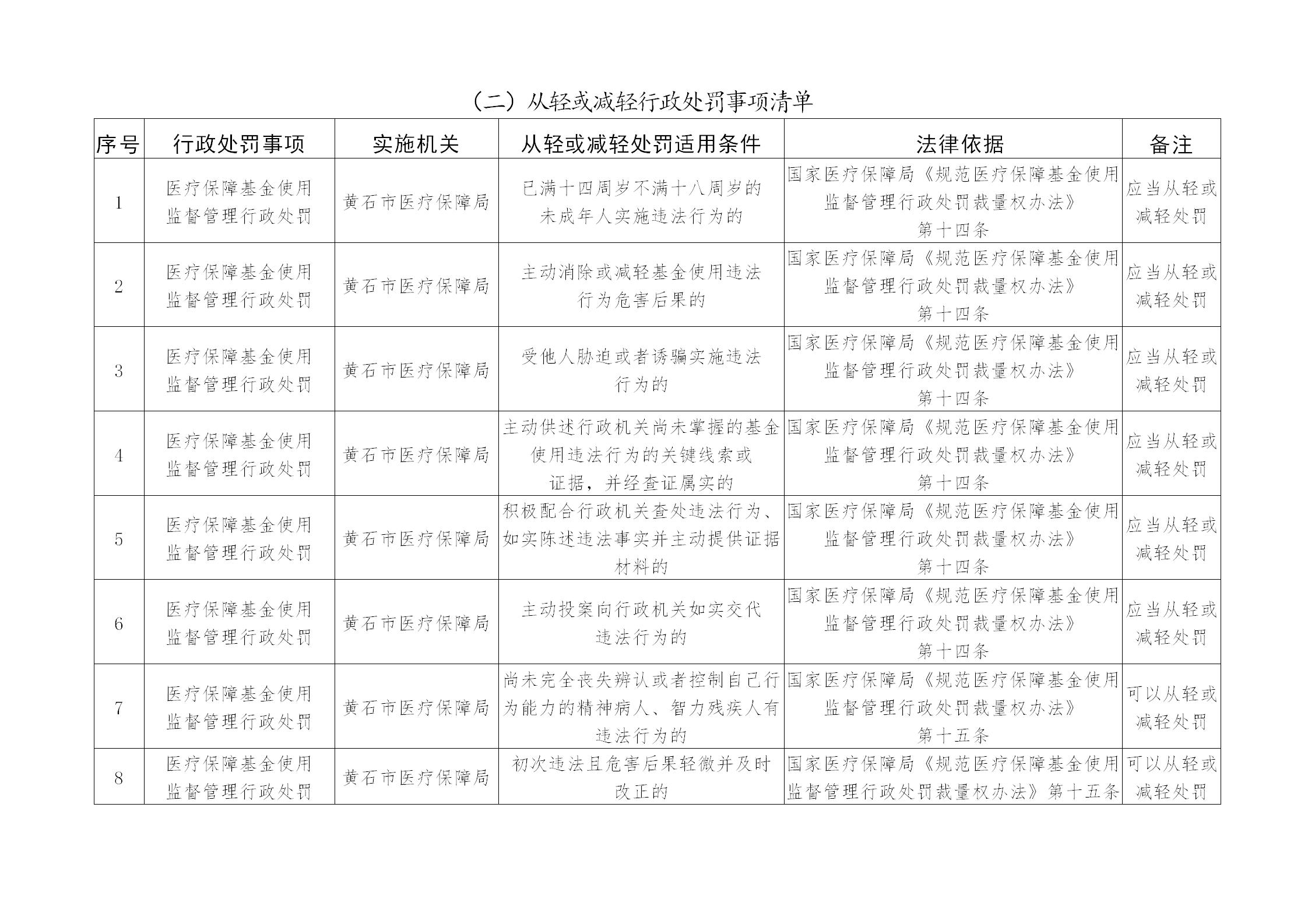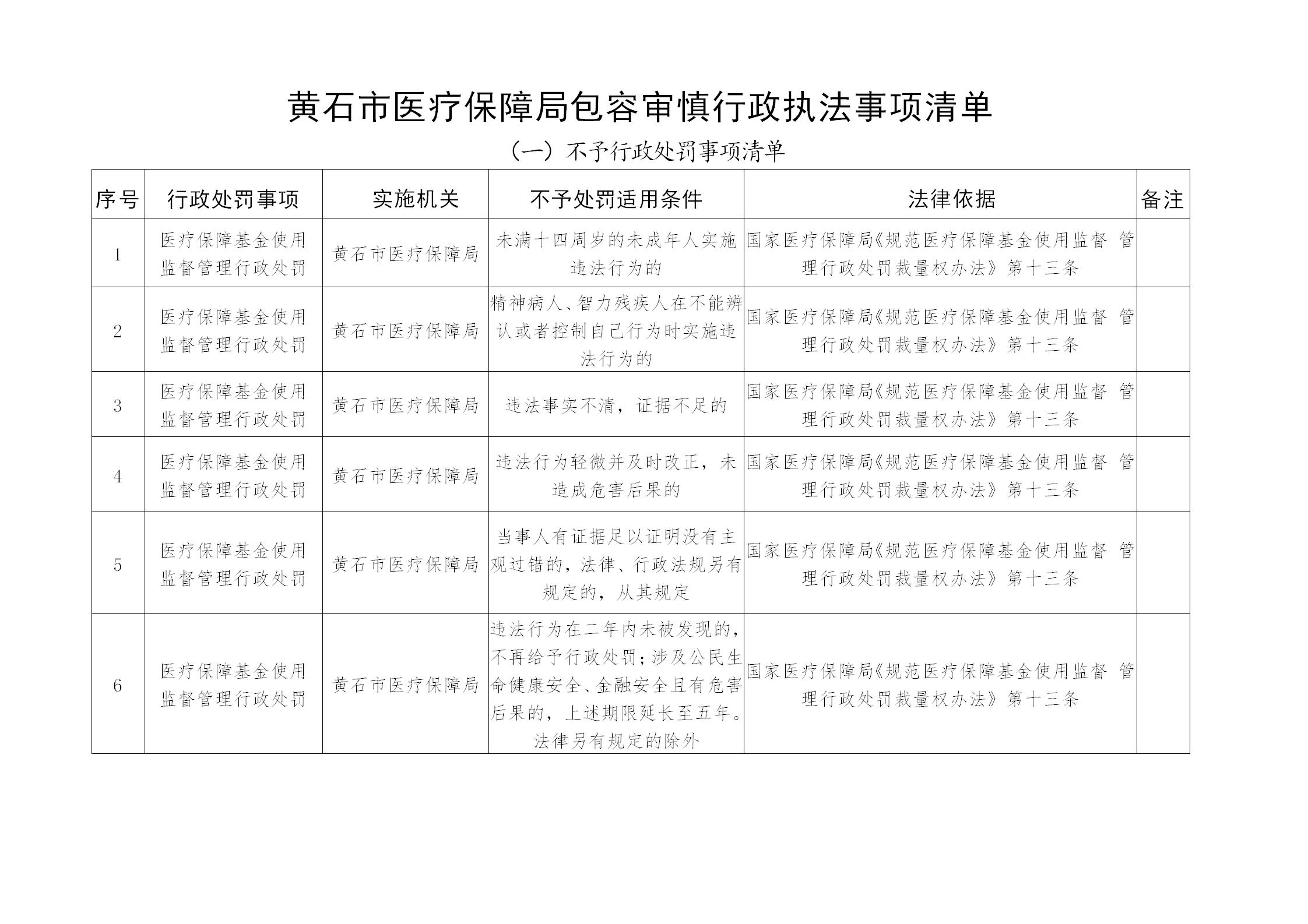 黃石市醫療保障局包容審慎行政執法事項清單